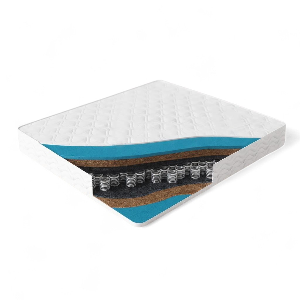 · Пенополиуретан – гипоаллергенный и влагостойкий материал, устойчивый к высоким нагрузкам. Он придает матрасу мягкость, сохраняя упругость и эластичность.· Бикокосовая плита - это смесь натуральных и синтетических волокон, способствует равномерному распределению веса и улучшает циркуляцию воздуха в спальном месте.