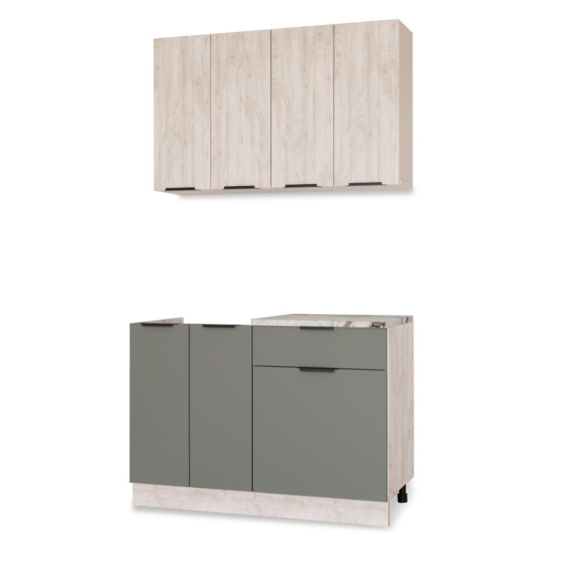 Этот гарнитур подойдет как для компактной кухни, так и для просторного помещения, создавая удобное и эстетичное рабочее пространство.