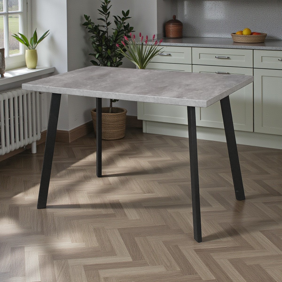 Стол Дублин CRAFT 32 ,1070*700,  нераскладной (ЛДСП Цемент темный) В2/Черный