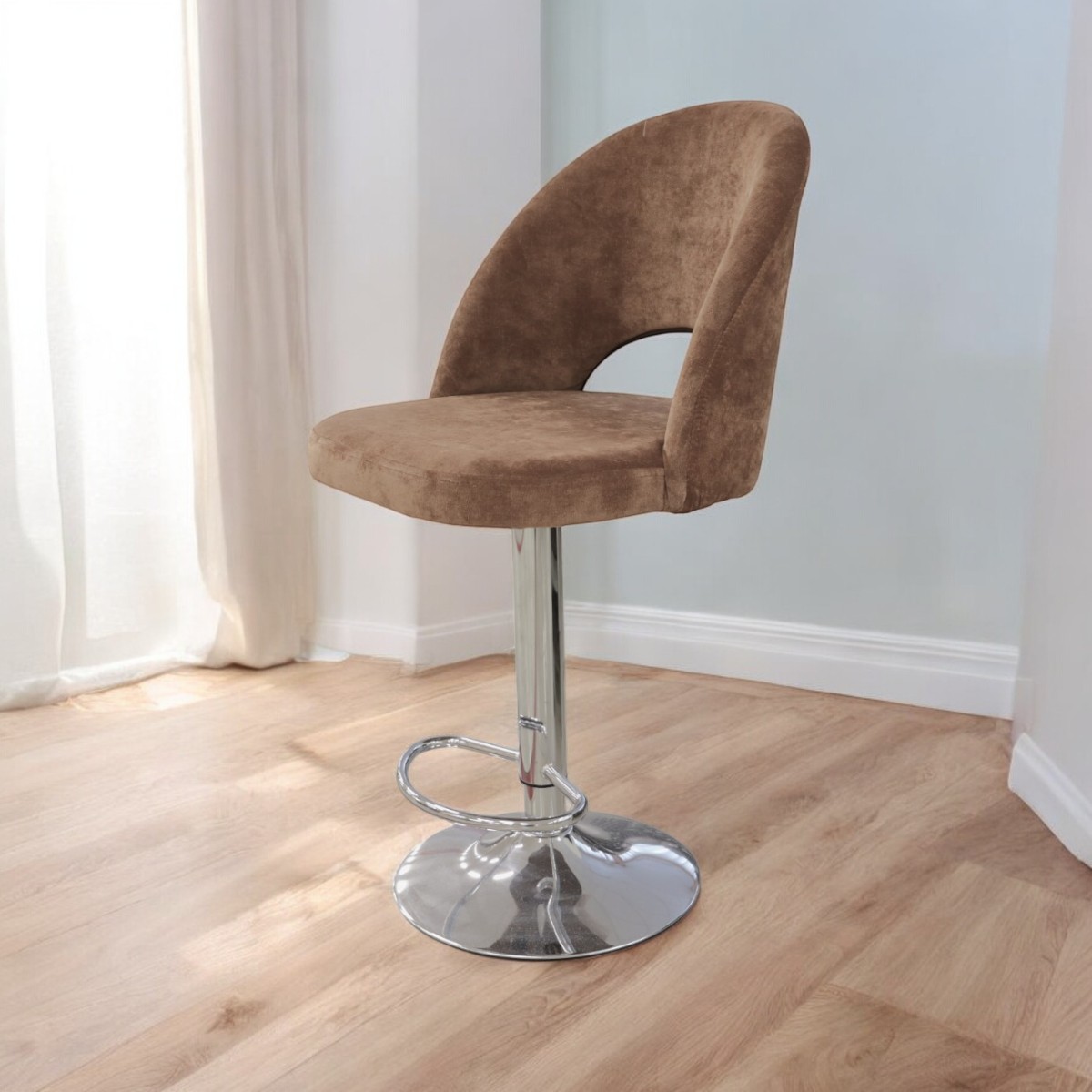 Стул барный «Лайт» Velvet LUX-8 Коричневый/Хром