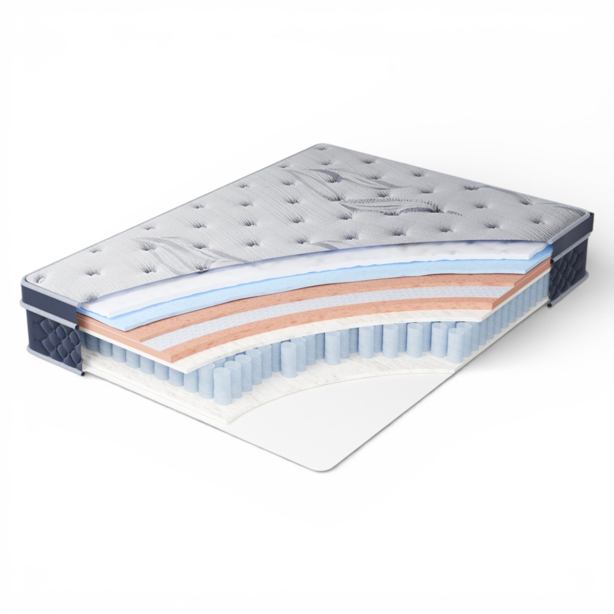 Обеспечивает оптимальную жесткость, сглаживает переходы между слоями и продлевает срок службы пружинного блока, создавая прочное и комфортное основание.
